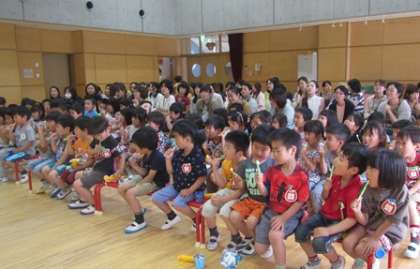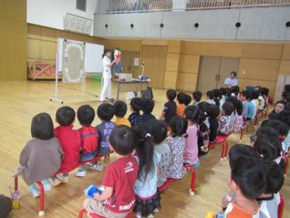 幼稚園ではそれに先立ち、4歳児と5歳児の親子で歯磨き指導を受けました。