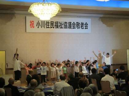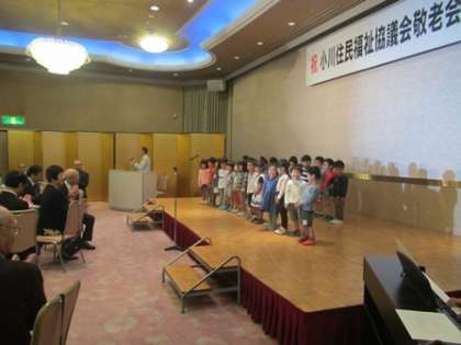 地域の住民福祉協議会が主催されている敬老会に、みつば幼稚園の4歳児の子どもたちが参加し、歌と踊りを披露しました。