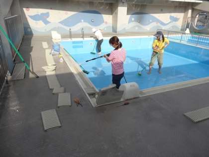 (プールサイドを中心にゆり組が掃除をする予定です。)