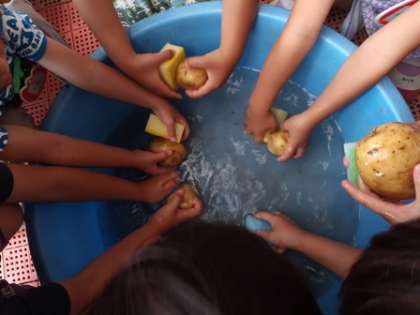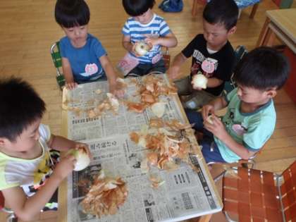 畑でとれた玉ねぎ、ジャガイモを使ってつくります。