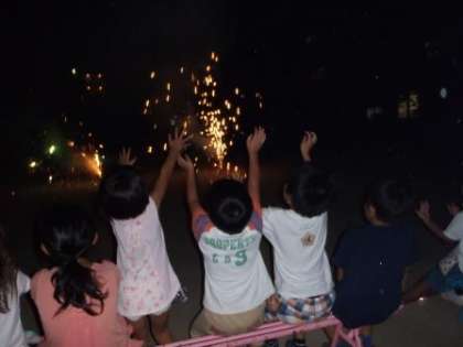ロケット花火の音や手持花火のきれいな色に歓声をあげていました。