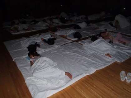 夜は,幼稚園を探検して,みんなで普段の幼稚園では楽しめないことを,たくさん楽しみ,ぐっすり眠りました。