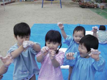 これからも、子どもたちといろんな感触を味わえるような遊びを楽しんでいきたいと思います。