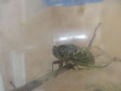 4歳児の子どもがセミを捕まえてとても喜んでいました。