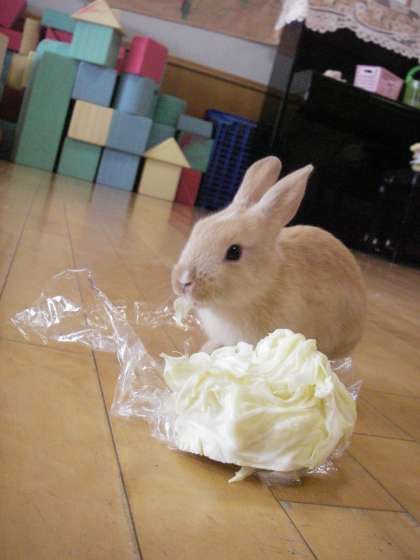 初めて出会った時から、かわいくて仕方なくて抱っこしたり、なでたり、お家から持ってきた野菜をあげたりと愛情たっぷりにかかわっています。たくさん野菜を食べて、どんどん大きくなっていっています。