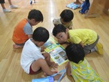 しばらくお休みしていましたが,今日から夏季の預かり保育再開です。園庭開放も今日からまた始めました。園庭開放にやってきた小さいお友達と砂場でいっぱいどろんこになって遊びました。部屋では,みつけた虫を調べたり,本をみんなでみたりしていました。明日も預かり保育,園庭開放をしますので,いっぱい遊びましょうね。