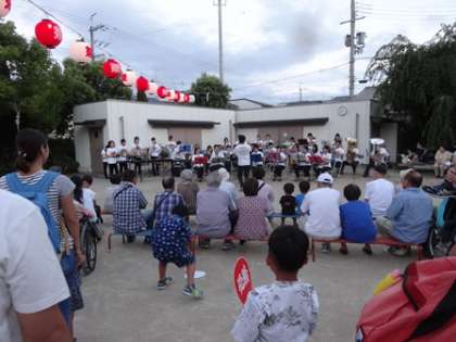 他にも地域の吹奏楽団の演奏や、様々なお店(屋台)があり、子どもたちは地域の人に交わりながら、楽しい夏のひと時を過ごし笑顔がいっぱいあふれていました。