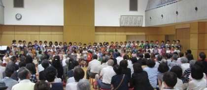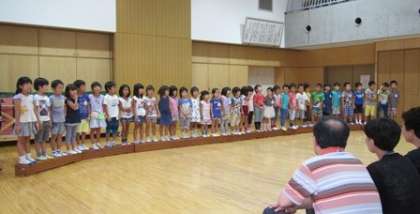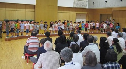 祖父母の皆様方は、にっこり笑顔で、子どもたちの歌を聴いてくださいました。