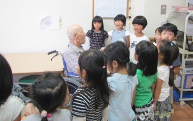 5歳児の子どもたちが隣の特別養護老人ホームを訪ねました。