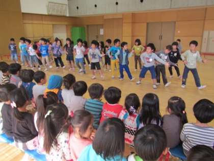 金曜日には他の幼稚園の子どもたちがみつば幼稚園に来て、交流し、一緒に幼稚園大会の演技をします。たくさんの友達と一緒にすると、きっと、もっと楽しい気持ちになるでしょうね。