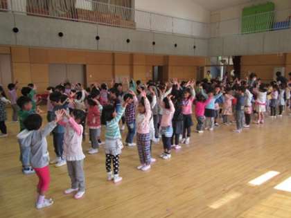 たくさんの友達が一堂に集まって、歌を歌ったりなかよし遊びをすると、とても元気があふれ、迫力がありました。