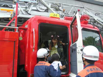 大型のはしご車の訓練を見学したりしました。