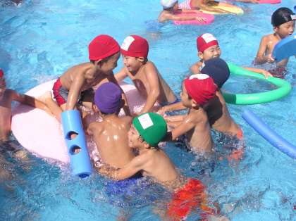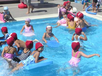 今日は,各クラスごとにゆったりとプールで遊びました。