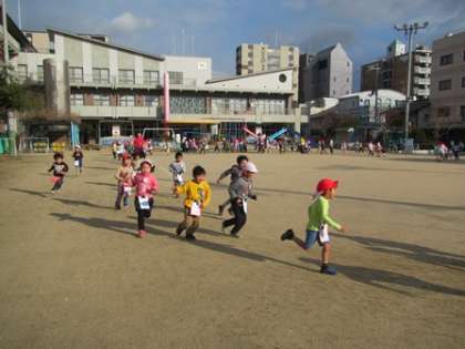 寒い朝ですが、子どもたちは元気に走り始めました。