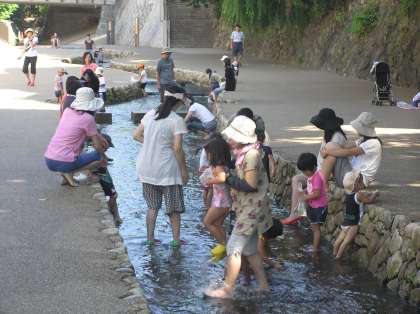 子どもたちと一緒に水の気持ちよさを楽しんでいらっしゃる保護者の方もおられました。