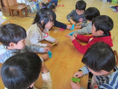 (5歳児は3歳児の三宝も折ってくれていました。ありがとう。)