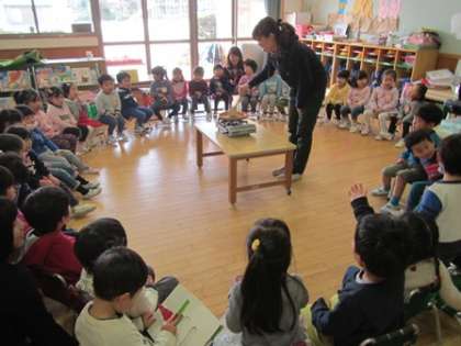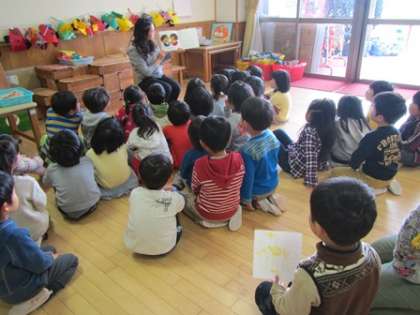 なぜ、豆をまくのか、絵本などで行事の由来の話を先生から聞いたり、大豆を煎って豆まきをしたりしました。