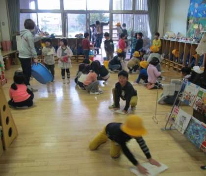 子どもたちも、自分たちの保育室やロッカー、廊下などの雑巾がけをしました。