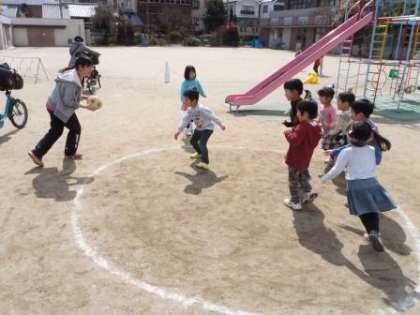午後からとてもいい天気で,たくさんの子どもが園庭で遊んでいました。