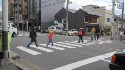 でも、曲がってくる車もあり、どのタイミングで信号を渡ればよいのやら、戸惑う様子が見られました。