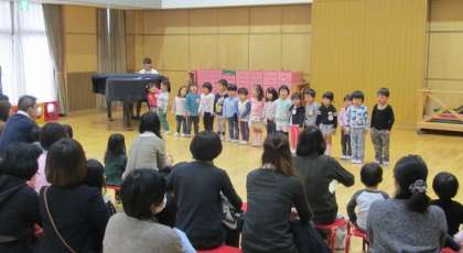 在園児の歌や楽器あそびなどを見ていただいたり、