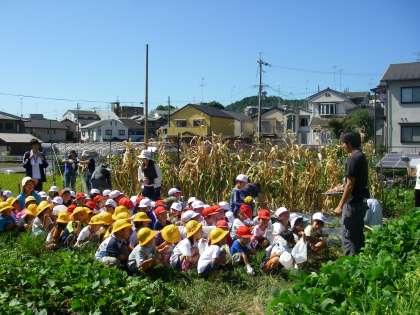 9月10日,ポップコーンの収穫に行きました。「どんななってるかな?」と子どもたちと楽しみに出かけました。もうすっかり,乾燥しているので,子どもたちにははじめはピンと来なかったようです。