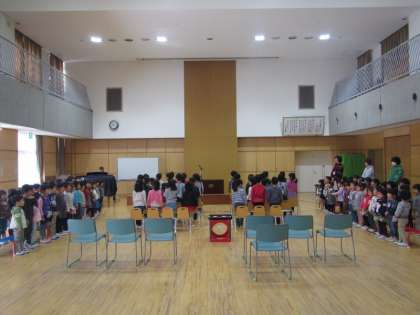 金曜日の修了式を控え、みんなで修了式の稽古をしています。