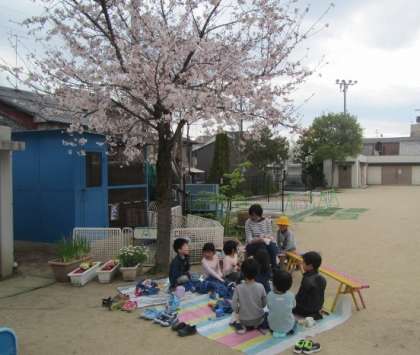 今日は、預かり保育の子どもたちと、お花見をしました。