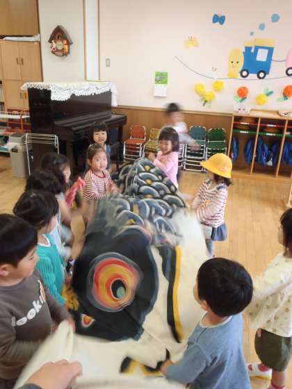 じっと見たり,触ったり,そうっと中へ入ってみたりと,大きなこいのぼりにたくさん触れて遊びました。