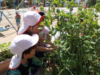 5歳児がまだ4歳児だった昨年の晩秋。豆の種をまきました。春になりその豆がどんどんと大きくなり、花が咲き、実がなりました!