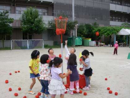 初めて運動会に参加するたんぽぽ組やもも組の子どもたちも,去年運動会を少し覚えているという2回目のばら組の子どもたちも,今年は年長組やし・・・と張り切っている