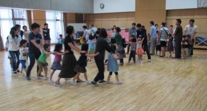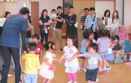 参観では子どもたちの好きな遊びの様子を見ていただいたり、おうちの人と一緒になかよし遊びをしたりしました。