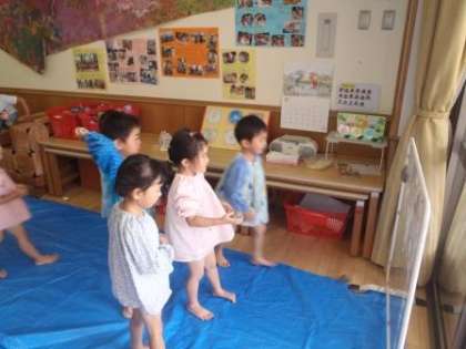 と上に乗ったり,ボードに投げてくっつけたりして全身を使って遊びました。