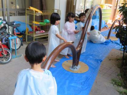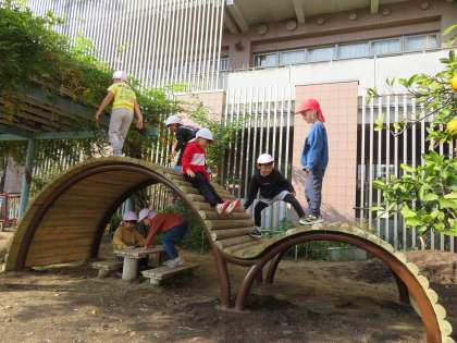 30周年の記念に、古くなったログハウスが、新しい遊具に生まれ変わりました。登ったり、渡ったり、お家みたいに入ったり…木のぬくもりはそのままに、子どもたちの思いが膨らむ“楽しい遊び場”になっています。子どもたちもペンキ塗りのお手伝いをして出来上がった遊具。大切に使いたいと思います。遊具製作に携わってくださった皆さん、本当にありがとうございました!