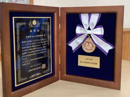 今年度、みつば幼稚園は、教育功労者表彰を受けました。ここ数年間取り組んできた、『子どもたちのレジリエンス(しなやかに回復する力や、自分で考えて動き出す力など、心の育ち)を高めることを目指した保育実践』や『満3歳児子育て支援クラスなど、地域の子育て支援への貢献』を評価していただいての受賞です。これからも教職員一同、子どもたちの育ちのために、一丸となって取り組んでいきたいと思います!