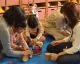 3歳児のもも組の保育室で,土粘土を出して遊んでいます。 もも組の保育室ですが,も...