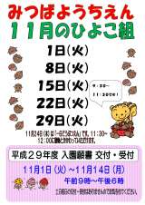 朝晩少し肌寒くなってきました。風邪などひいていないですか?11月も幼稚園で楽し...