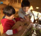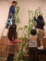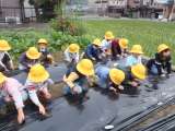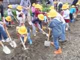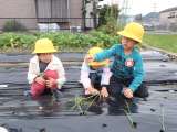 お母さん先生にマルチをはってもらっている間に,畑探検です。たくさんの野菜の様子を...