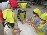 みつば幼稚園のもちつきでは,学校運営協議会みつばの森と地域との連携により,もち米...