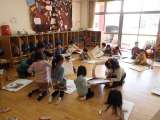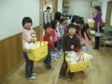 4歳児のばら組が5歳児のゆり組の保育室にいっぱいやってきました。 「ゆり組さん,...
