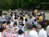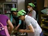 炊き上がった豆ご飯をお母さん先生たちがおにぎりにしてくださいました。 子どもた...