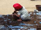 もも組とたんぽぽ組は何人かな・・・? それぞれのクラスのおぼんにおにぎりの数をか...