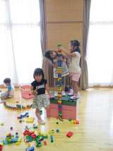 先日のなかよしタイム(預かり保育)での一場面です。 ブロックをいくつもつなげて...