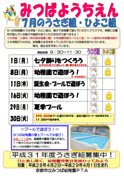 7月のうさぎ組・ひよこ組のお知らせ