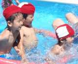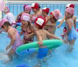 4歳児のばら組と5歳児のゆり組が入っている大きなプールには,水がなみなみと入って...