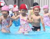 今日は今年度初めてのひよこ組プールです。 まだ幼稚園に入園していない,小さなお友...