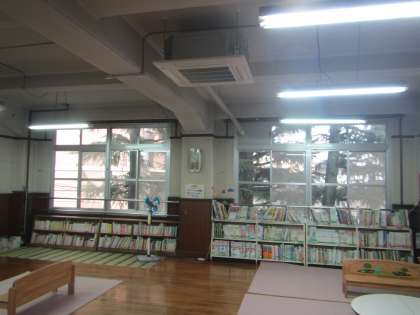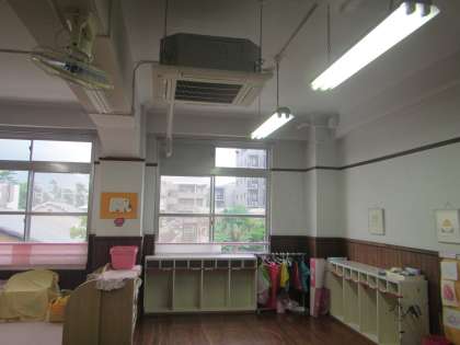 そこで,嬉しいお知らせがあります。本日できたばかりですが,絵本室と未就園いちご組の部屋に,待望のエアコンがつきました。今まで暑い部屋でいっぱい汗をかきながら絵本を読んだり,いちご組の部屋で遊んだりしていましたが,2学期からは快適な部屋で毎日思う存分過ごすことができます。楽しみにしておいてください。