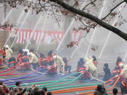 8日の日曜日,幼稚園の年長組の親子で,京都市消防出初式のパレードに参加しました。幼稚園の園児の憧れの的は,消防のレスキュー隊です。出初式のパレードに参加させていただき,多くの消防車と訓練の様子を見せていただき,親子で「すごい!」と感動しました。