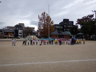 今日は、中京もえぎ幼稚園に乾隆幼稚園・楊梅幼稚園・待賢幼稚園の5歳児の子どもたちが集まり、一緒に遊んだり歌ったり踊ったりしながら楽しみました!