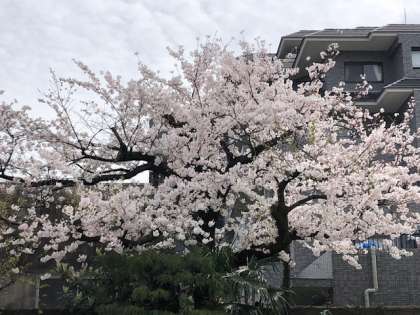 園庭の桜が、満開です。
